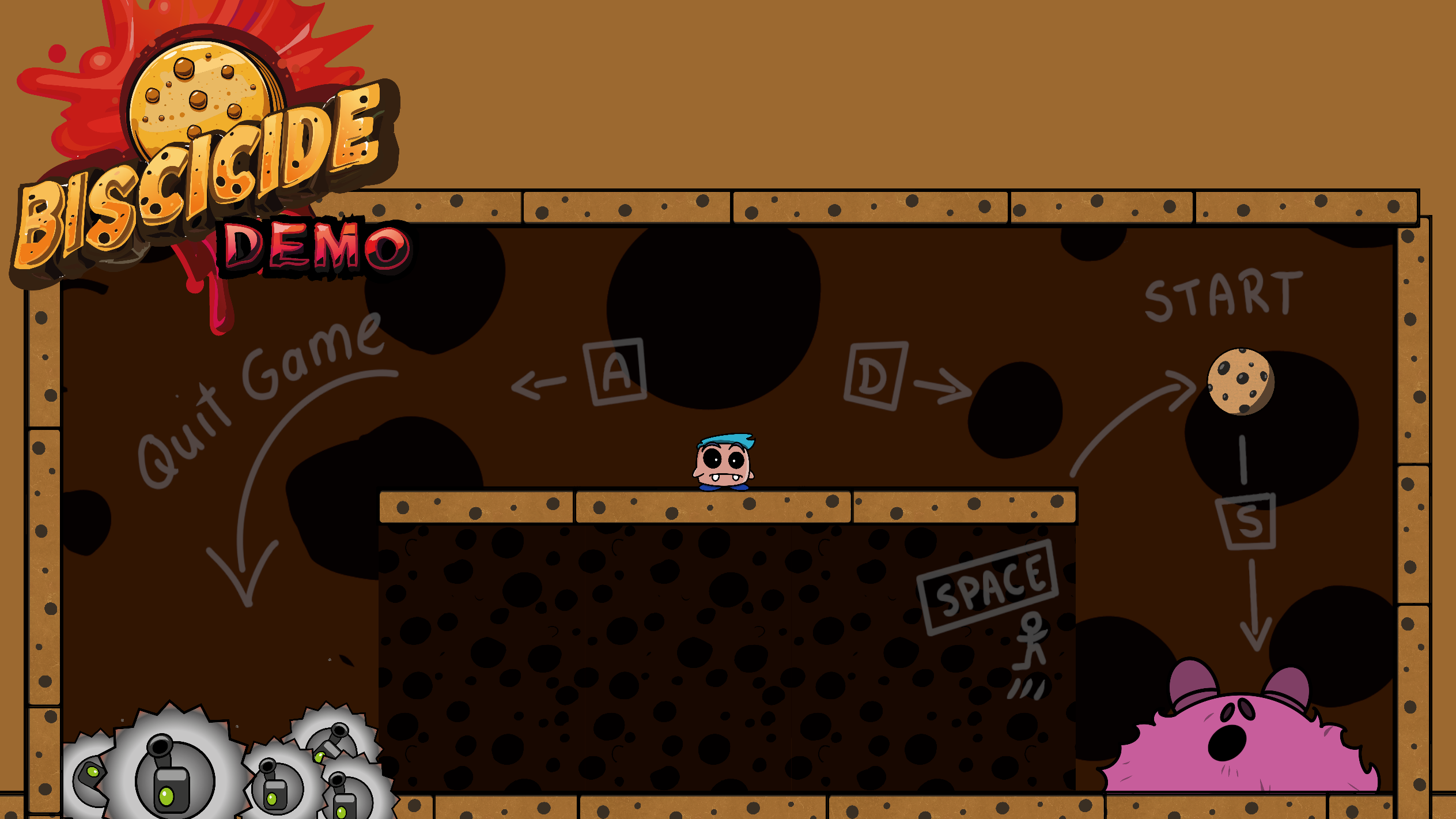 Biscicide is a puzzle platformer where your goal is to feed the monster with cookies.